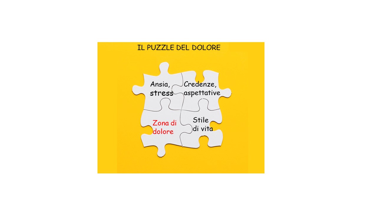 La figura mostra solo alcuni degli aspetti del puzzle del dolore ma serve a spiegare che la zona dove sentite male altro non è che la punta dell'iceberg di un meccanismo molto più complesso.