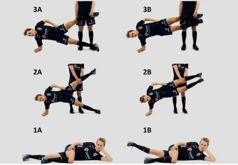 in figura: esercizi per la pubalgia.